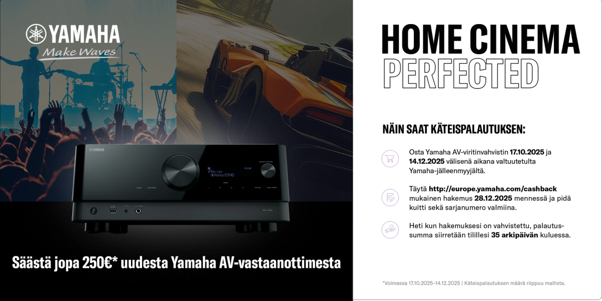 Osta Yamaha AV-viritinvahvistin 17.10.2025 ja 14.12.2025 välisenä aikana valtuutetulta Yamaha-jälleenmyyjältä.
