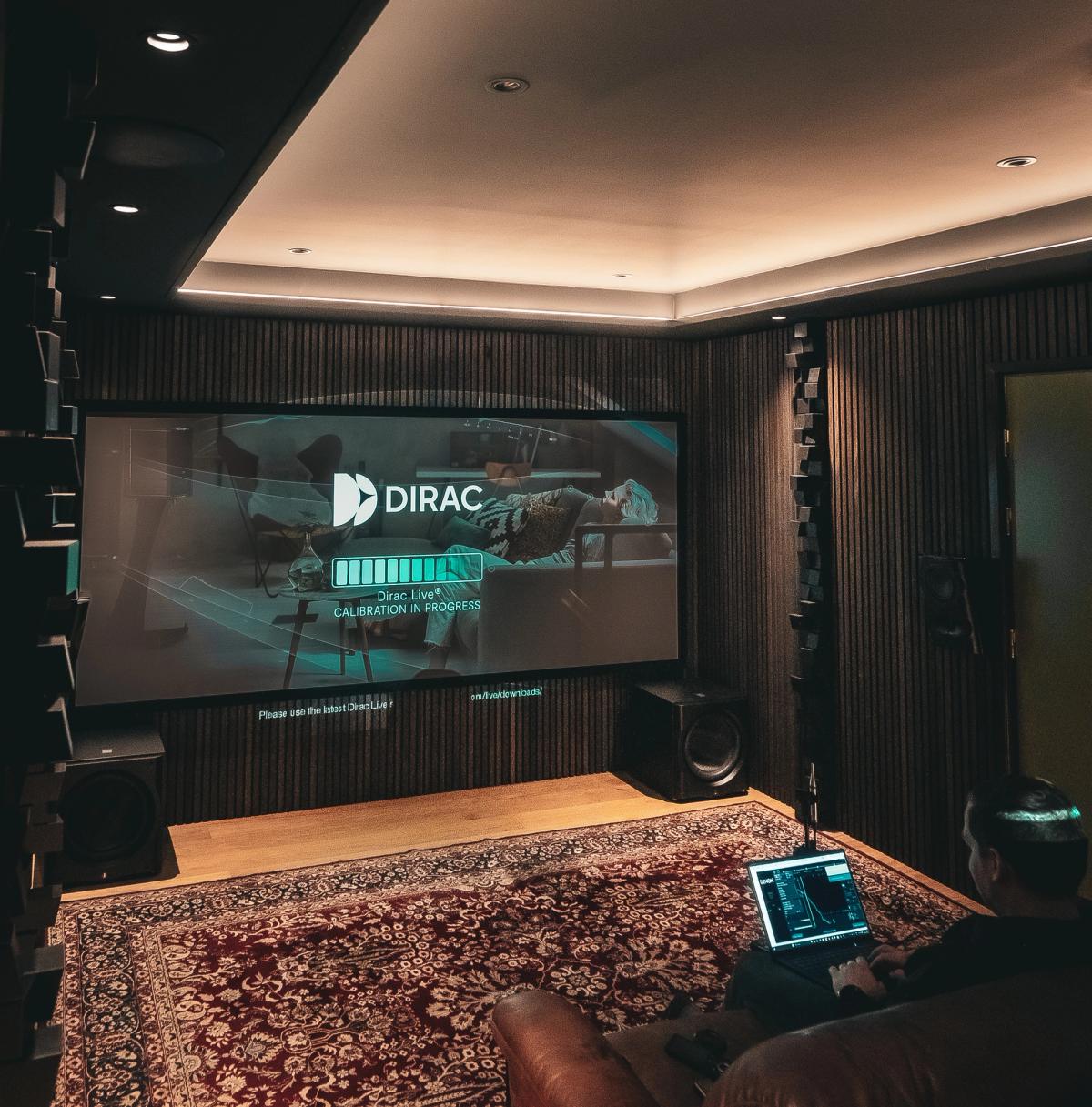Tämän vuoden toinen luovutettu kotiteatteri sisältää todella suorituskykyisen Perlisten 9.4.4 Dolby Atmos -järjestelmän. Pääkaiuttimet on sijoitettu valkokankaan taakse, Dolby Atmos -kaiuttimet on upotettu kattoon ja surround-kaiuttimet ovat on-wall-mallia. Tilaan valittiin akustiikaksi tanskalaisen WoodUppin akustiikkapaneelit sekä portugalilaisen Vicousticin diffuusorit. Kotiteatterin tekniikkaa ja valaistusta hallitaan Crestron Home -kotiautomaatiolla, jolloin kaikki toiminnot ovat yhden kaukosäätimen takana.