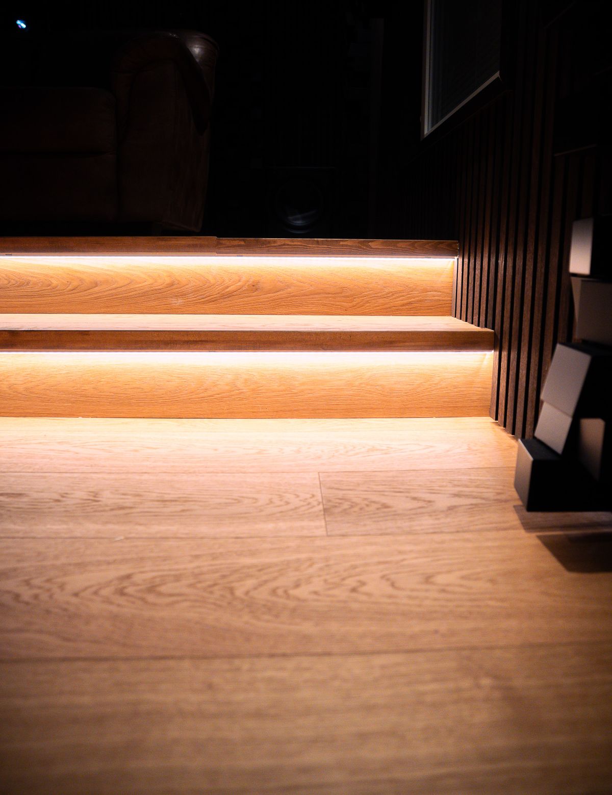 Huoneen ilmeen kruunaa tyylikkäästi toteutettu kasettikatto, joka mahdollisti samalla Dolby Atmos -uppokaiuttimien siistin ja helpon asennuksen. Tästä kotiteatterista huokuu kotoisuus ja lämpö, joka kätkee sisälleen käsittämättömän tehokkaan ja modernin kotiteatterin, täydellisen paikan viettää perheen kanssa elokuvailtoja yhä uudelleen.