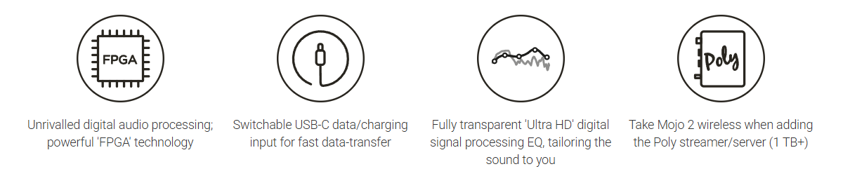 Mojo 2:n ainutlaatuinen arkkitehtuuri takaa huippuluokan äänenlaadun riippumatta kuunteluympäristöstä. Sen edistynyt signaalinkäsittely ja 4.4 mm balansoitu lähtö mahdollistavat sekä yksityiskohtaisen että dynaamisen äänen, joka herättää musiikin eloon pienimmilläkin vivahteilla.
