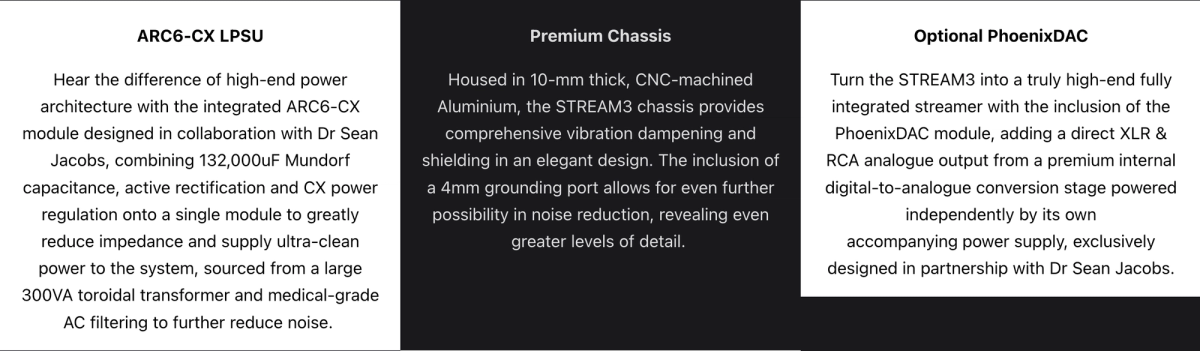 Laajan modulaarisen rakenteensa ansiosta STREAM3 on suunniteltu niille, jotka täydellisen äänen tavoittelussa haluavat siirtyä edistyneelle, monipuoliselle ja joustavalle arkkitehtuurille.